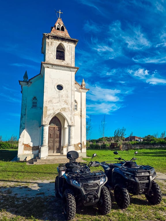 Descubra um lado pouco explorado de Cabo Frio pilotando seu próprio quadriciclo! O passeio é conduzido por um guia especializado, que lidera o grupo, enquanto cada participante segue com seu quadriciclo, com capacidade para até 2 pessoas por veículo.